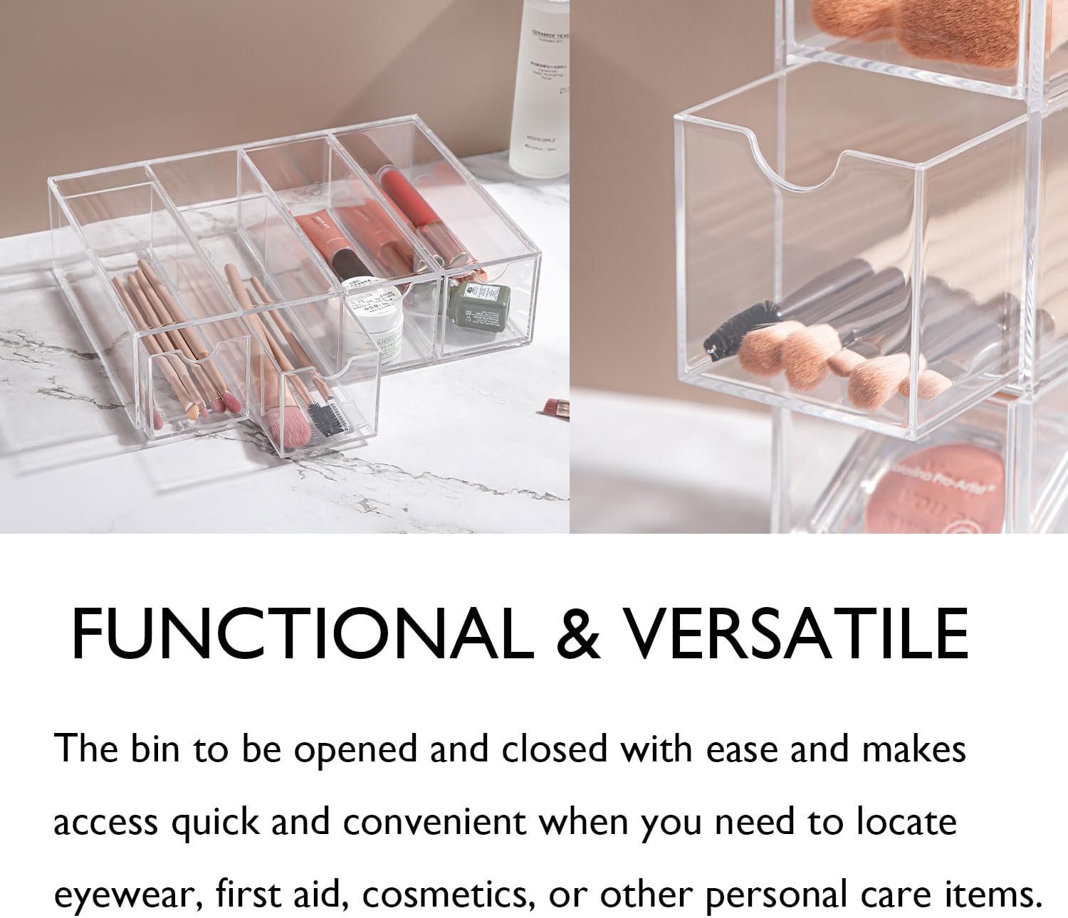 Our multiple bins can help you categorize and separately store your sunglasses, reading eyewear, also store other items like first aid, cosmetics or office supplies, so you always find what you need when you need it.