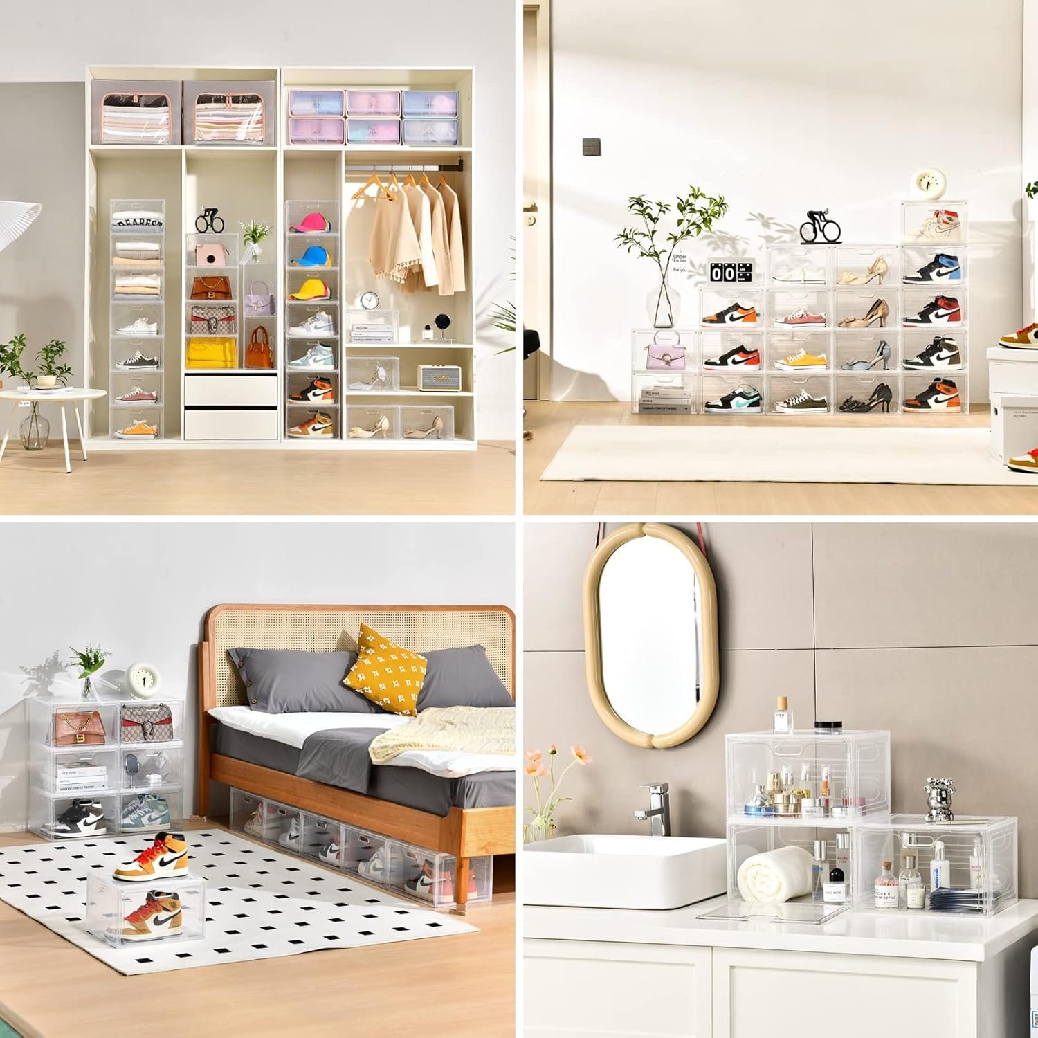 [New Stackable Design & Space Saving]Our shoe storage boxes are equipped with new stackable design,Which you can stack them by placing them directly.In addition,the stackable function can keep the shoe boxes whole very firmly and can be Multi-layered Stacked.And each stackable shoe bins can stay sturdy and easy to carry when integrated.