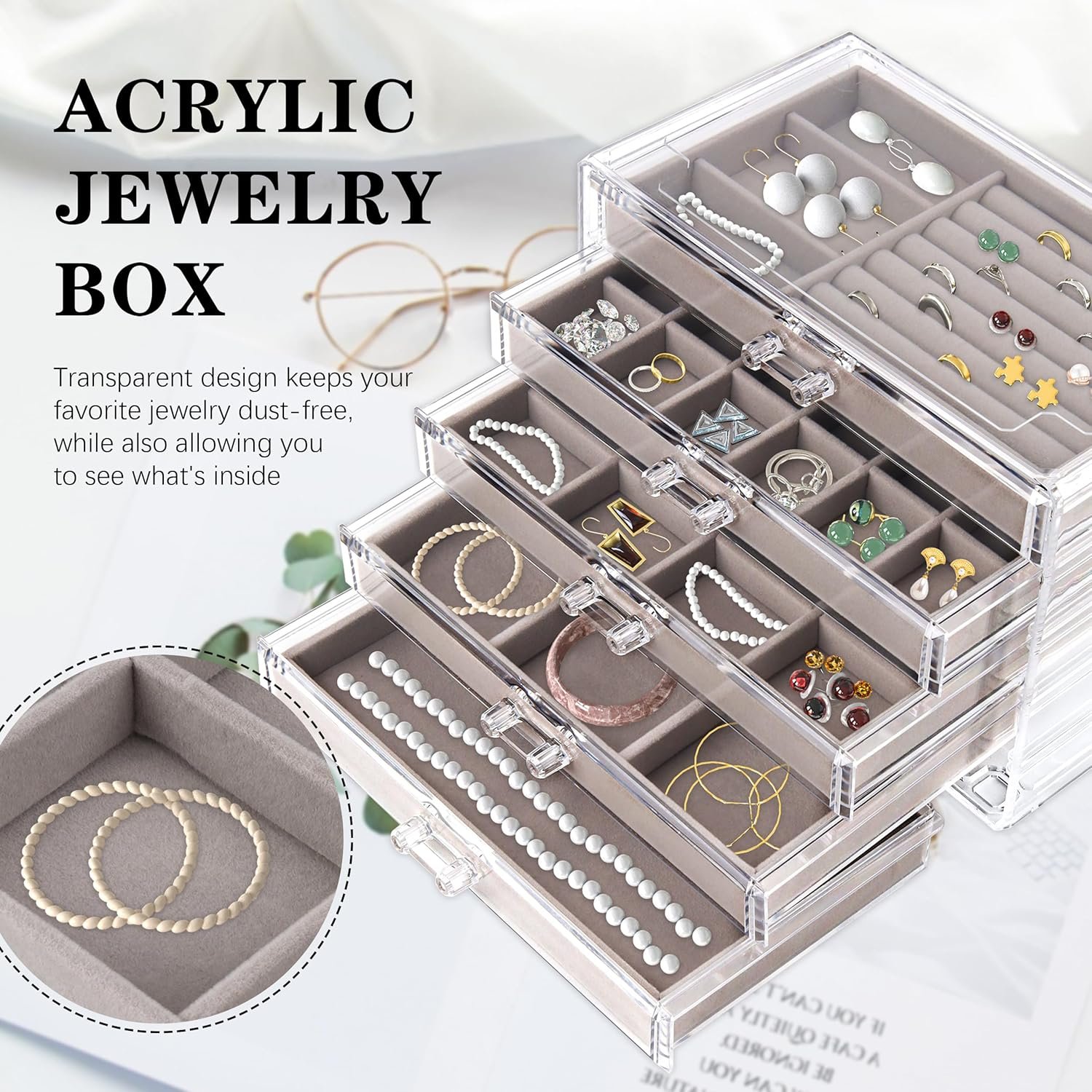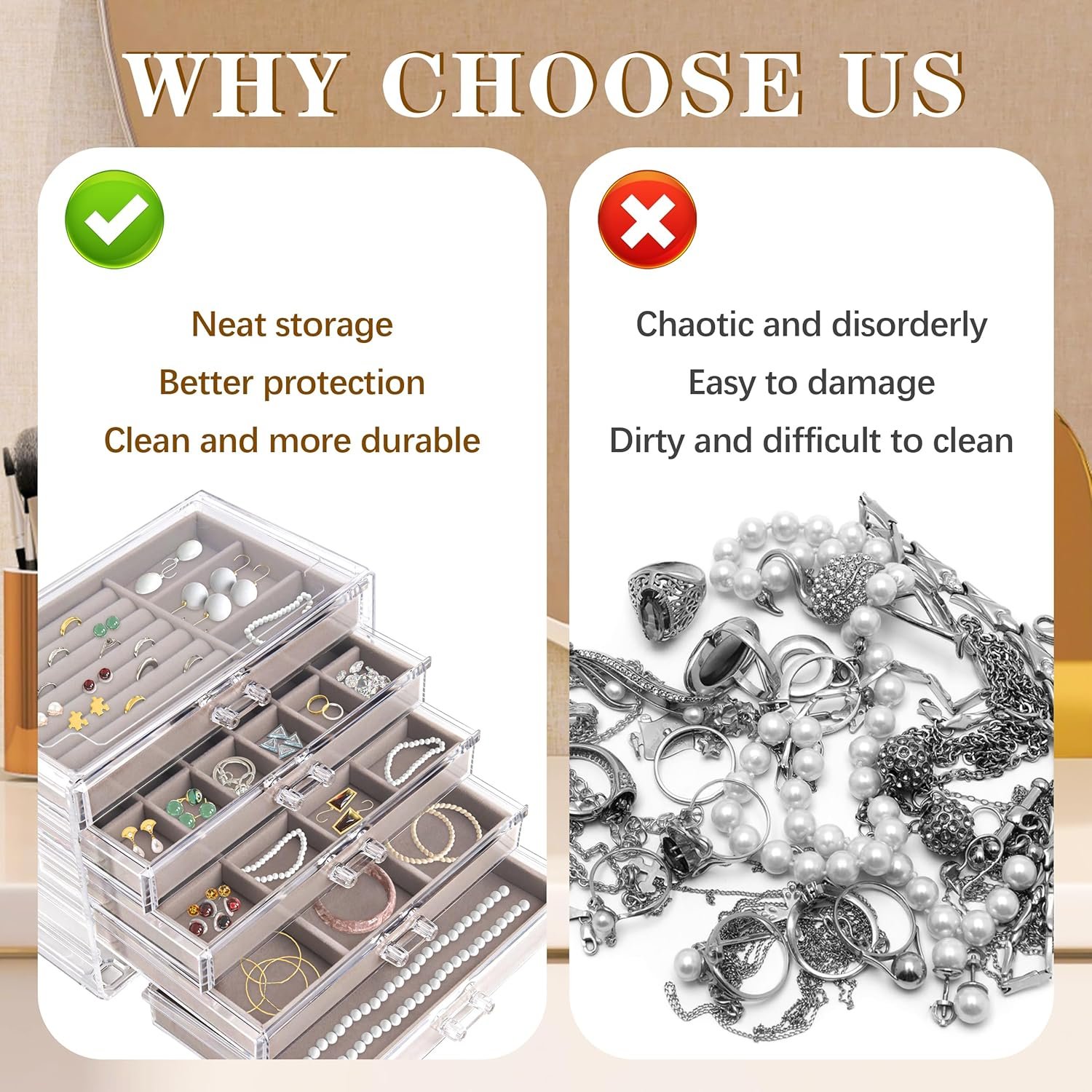 Transparent Design: Our acrylic jewelry organizer uses high-quality acrylic, which is clear and transparent, showcasing beautiful jewelry. You can have a clear view of the interior, making it easy to quickly find the desired jewelry.Say goodbye to rummaging through cluttered drawers and hello to a clear view of your treasured pieces.