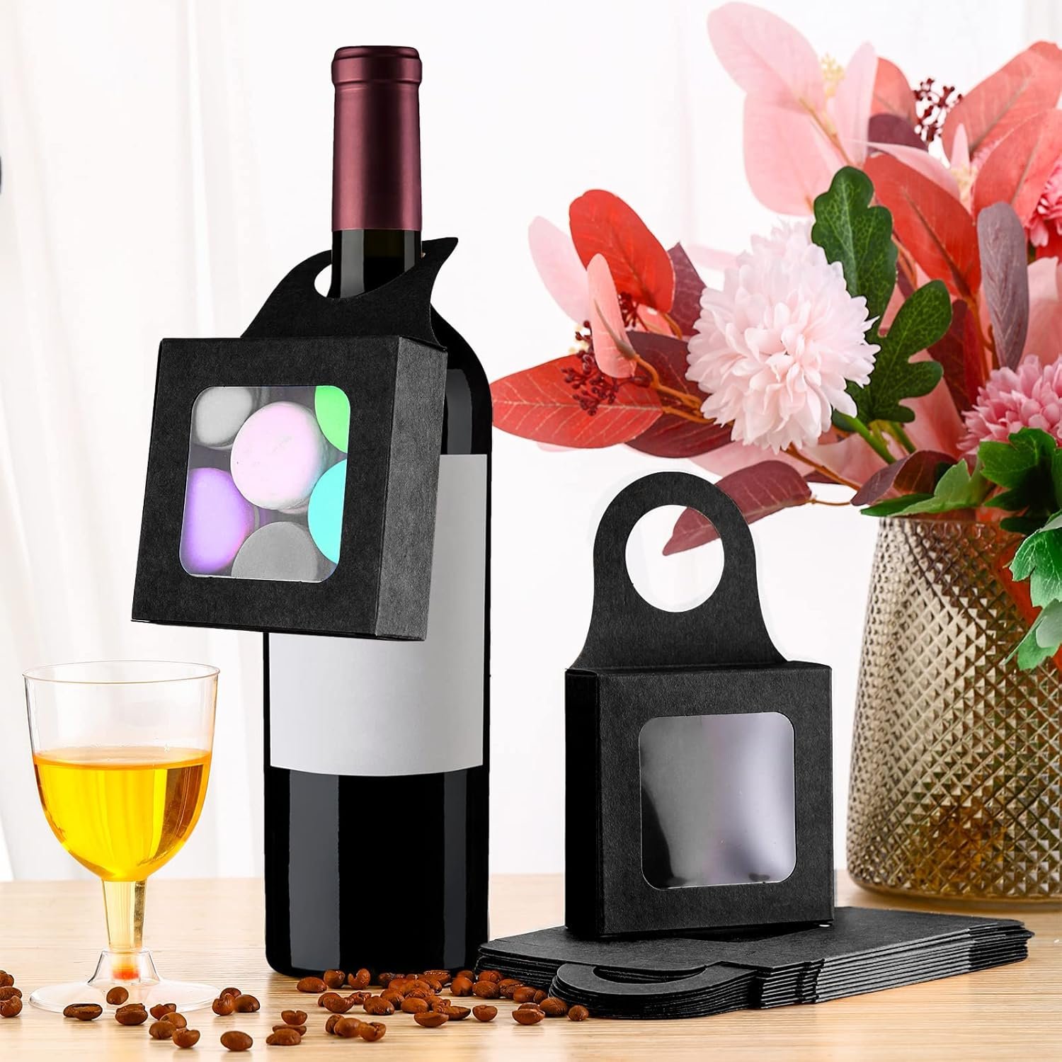 Intimate Clear Window: the wine box is designed with a single clear window, and the size of the window is large, so you can see the contents clearly and intuitively; You can use the wine bottle box as a biscuit box, transparent snack box, chocolate box, bridesmaid gift box, holiday present box and more