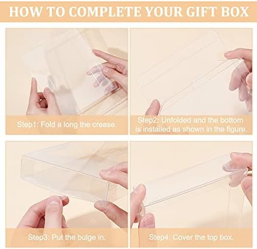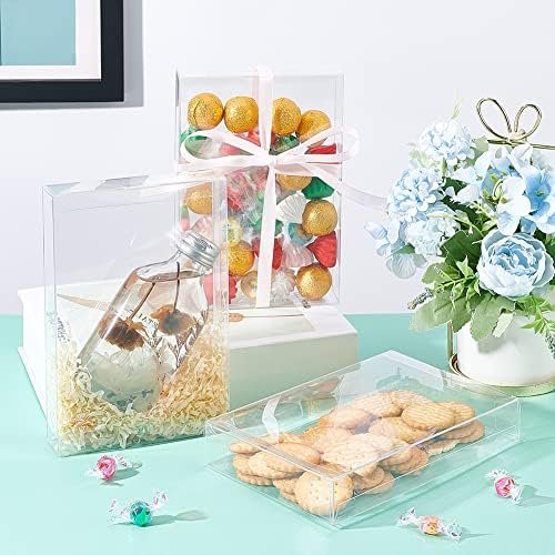 【Package Includes】: 10pcs clear plastic gift boxes, measures 17.5x12x3cm/6.89x4.72x1.18", rectangle after assembled; Unfold size: 26.3x15.85x0.05cm.