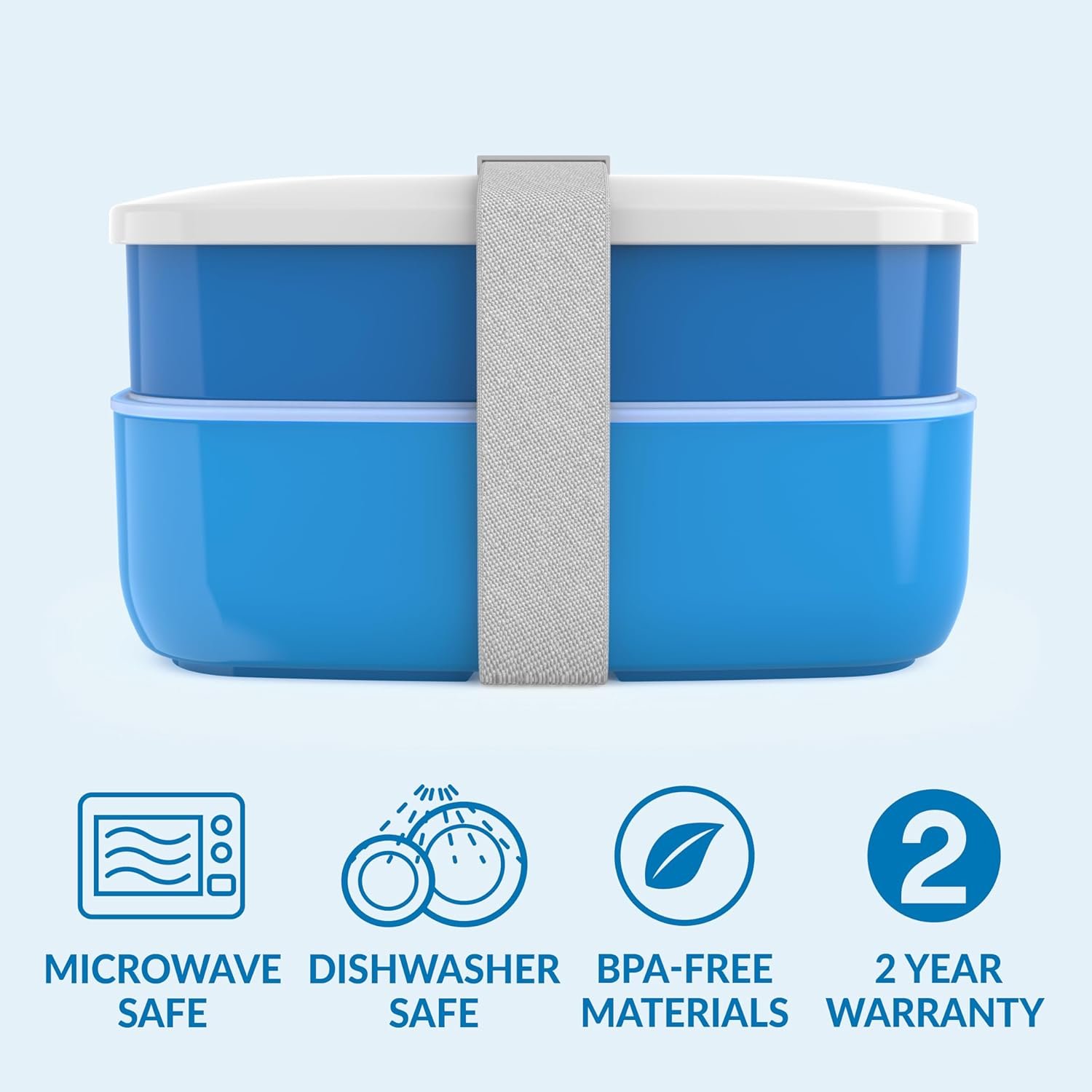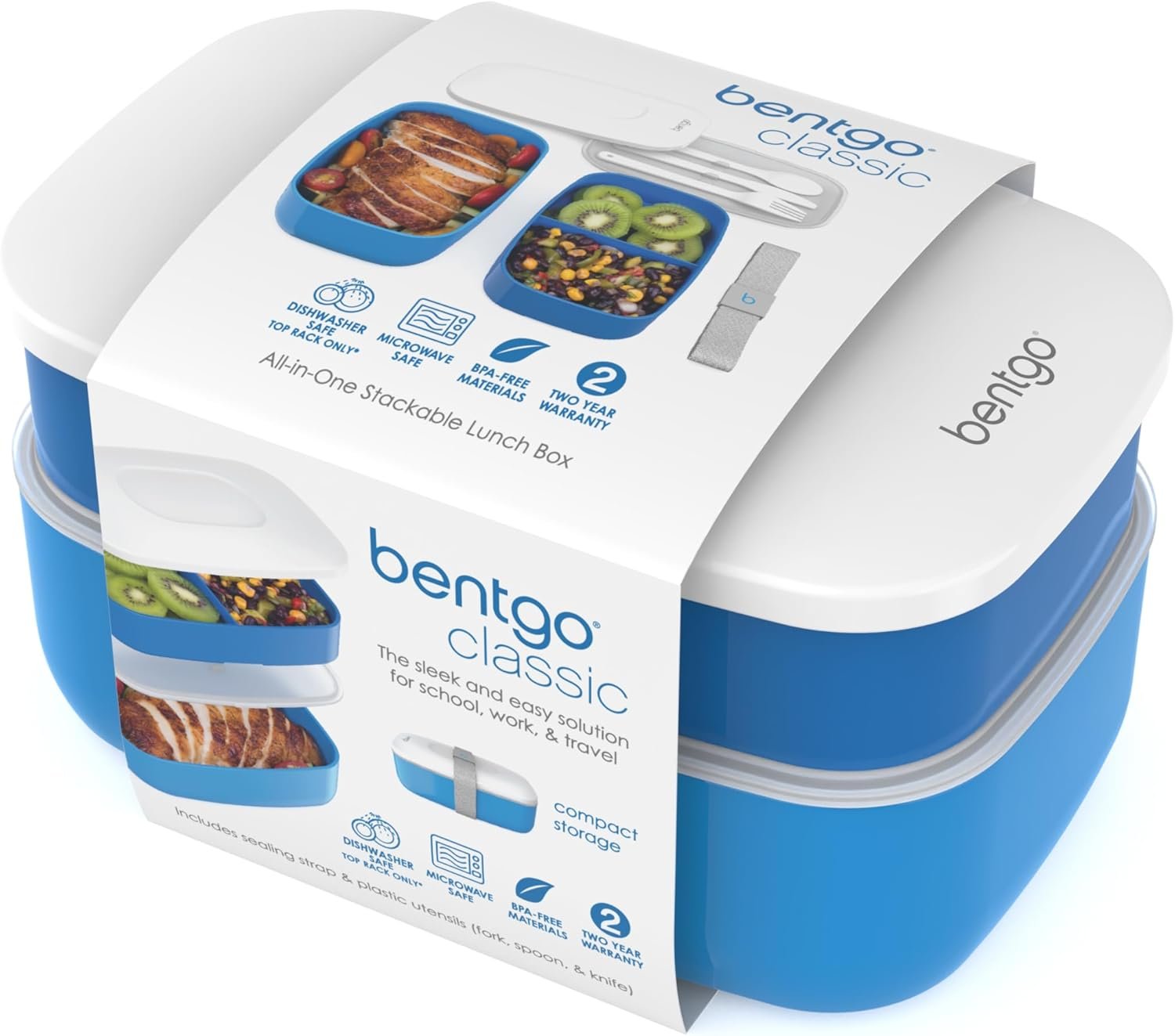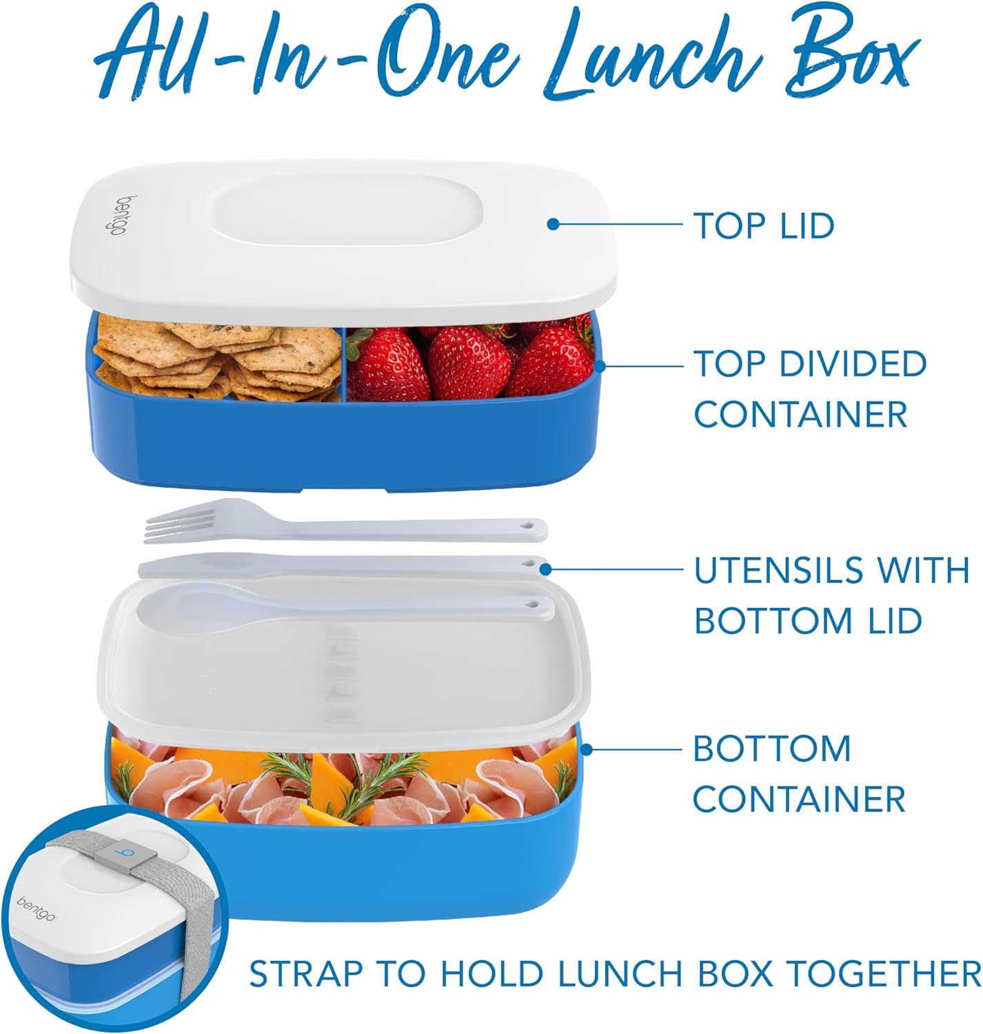 All-In-One Lunch Container: Don’t worry about forgetting utensils or having to pack multiple lunch containers – this convenient all-in-one bento box includes a plastic utensil set and three different food compartments held together with a nylon strap.
