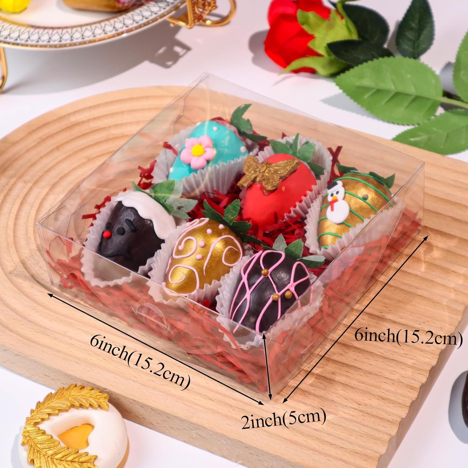 【Quantity;Size】20 Pack Full Clear Bakery boxes only,not including any food, Length:6 inches (15.2CM) x Width: 6inches(15.2CM) x Height:2 inches(5CM)