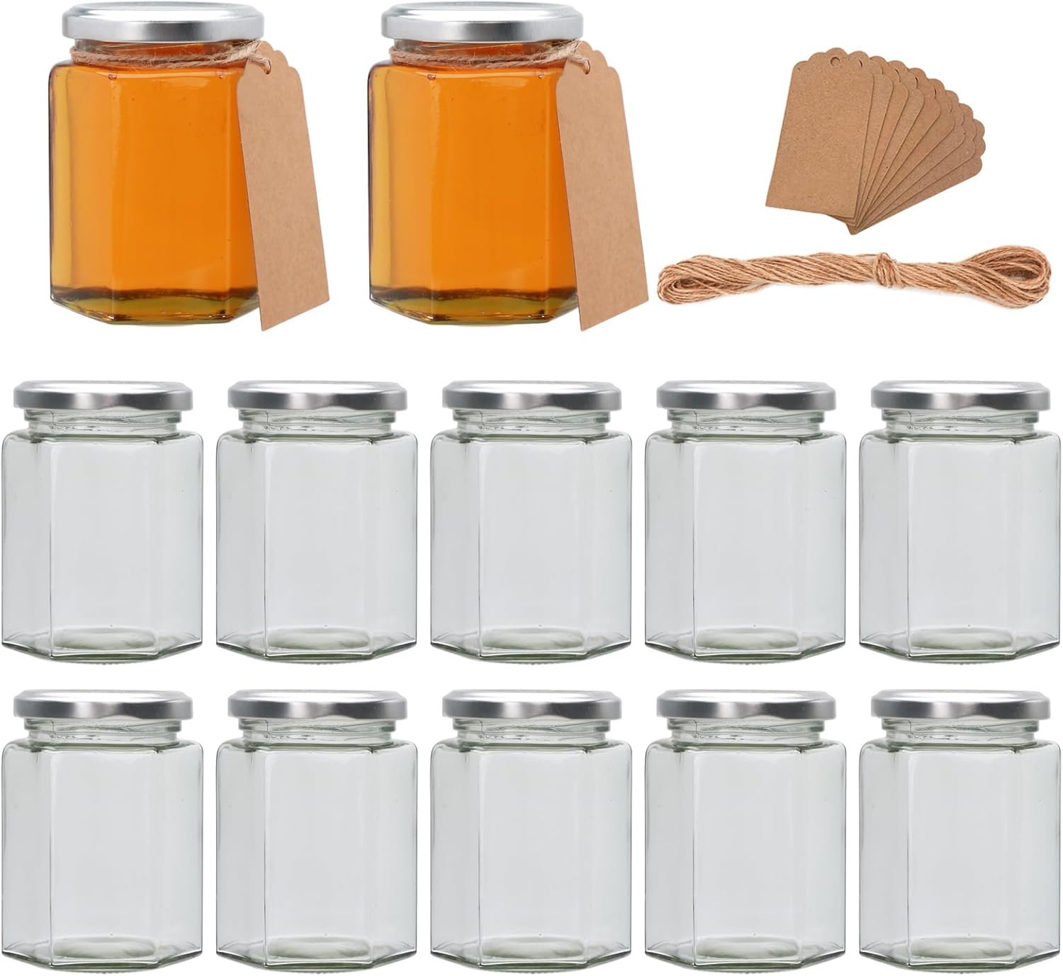 Value Set Of 12:10 oz cute glass jars with silver lids,come with 12 packs in a safety nicely package,clear,these little jars can store all the things you want and only take a little room