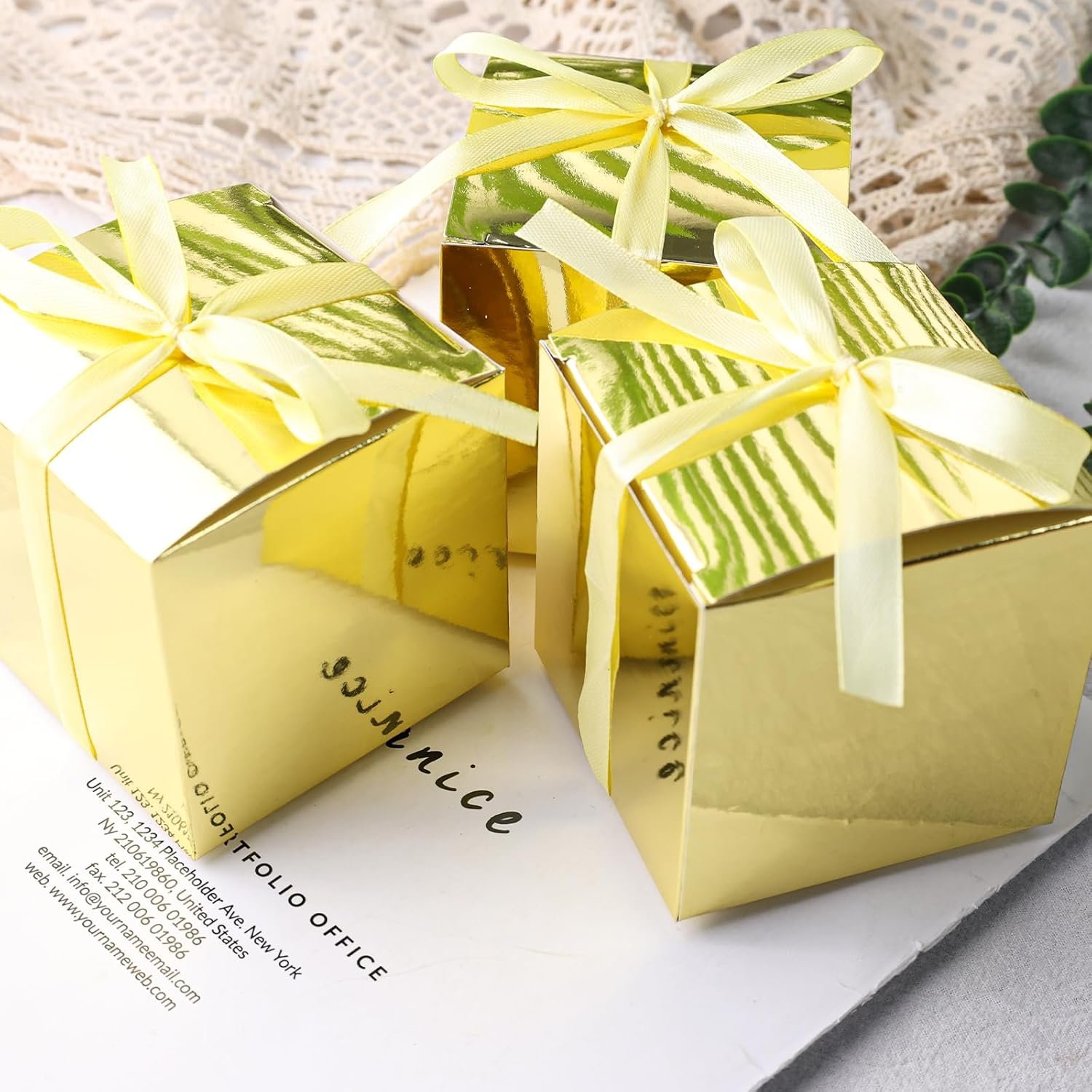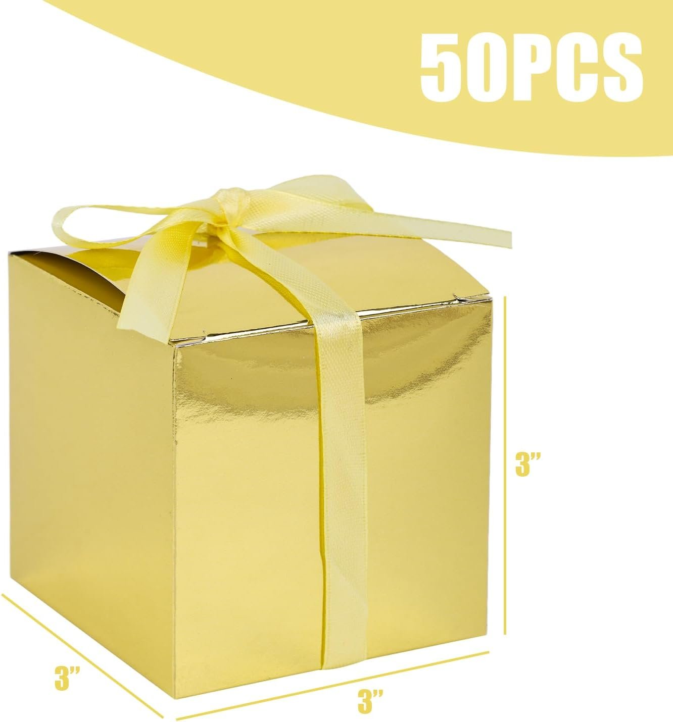 Package Inclusions - Receive 50 gold gift boxes and 50 gold ribbons, offering you an abundant quantity to fulfill all your gift packaging requirements.