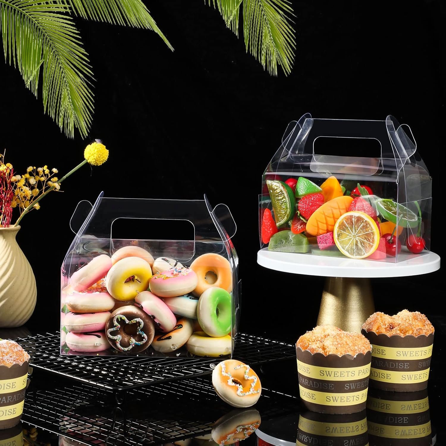 These clear candy boxes are suitable for cupcakes, chocolates, candy, coffee, tea, jewelry, souvenirs, and handmade items for Thanksgiving Day, Christmas, wedding, party, birthday and other celebratory occasions.