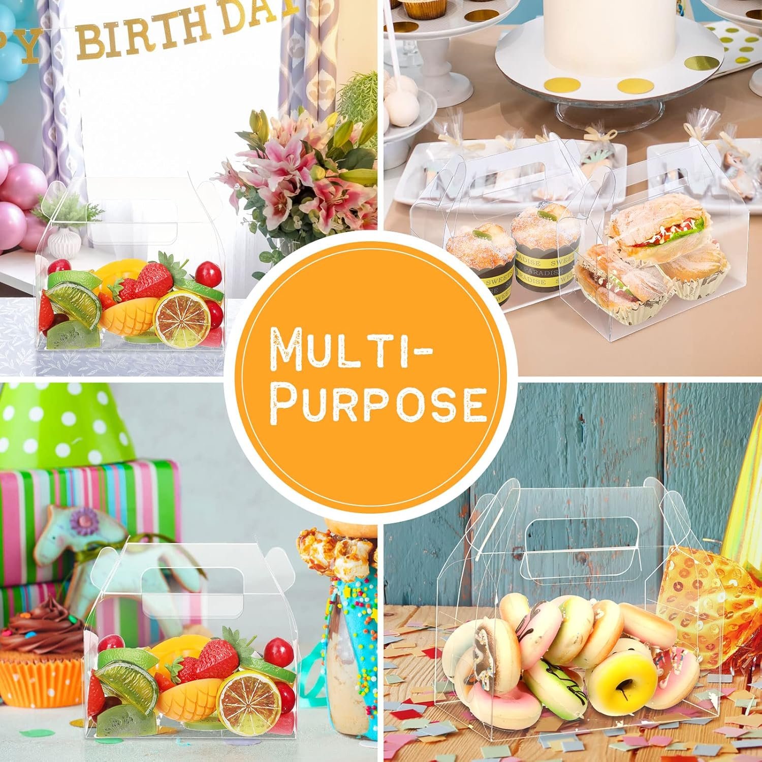 Multiple Uses: these clear party favor boxes are suitable for storing macarons, donuts, biscuits, chocolates, pies, bread, sandwiches, candy, cupcakes, collectibles, cakes and small gifts to make your food look delicious, and ideal for Christmas, weddings, baby showers, bridal showers, birthday parties and other celebrations