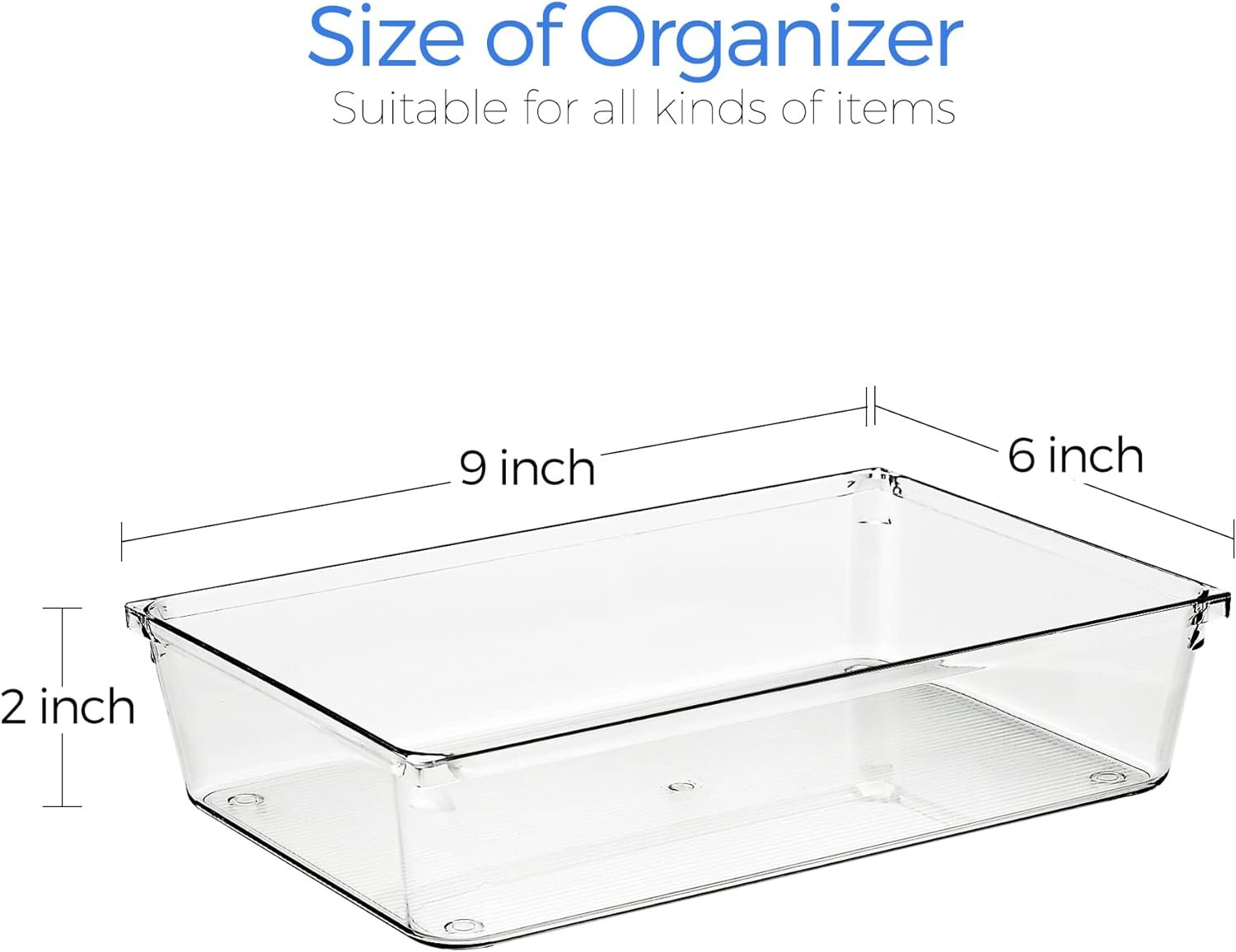 Customizable with 6 pcs organizers: One set of the desk drawer organizers includes 6 storage bins that you can place together to create one—or many—highly-functional drawer organization systems. Includes: 6 x 9 x 2 inches (6pcs)