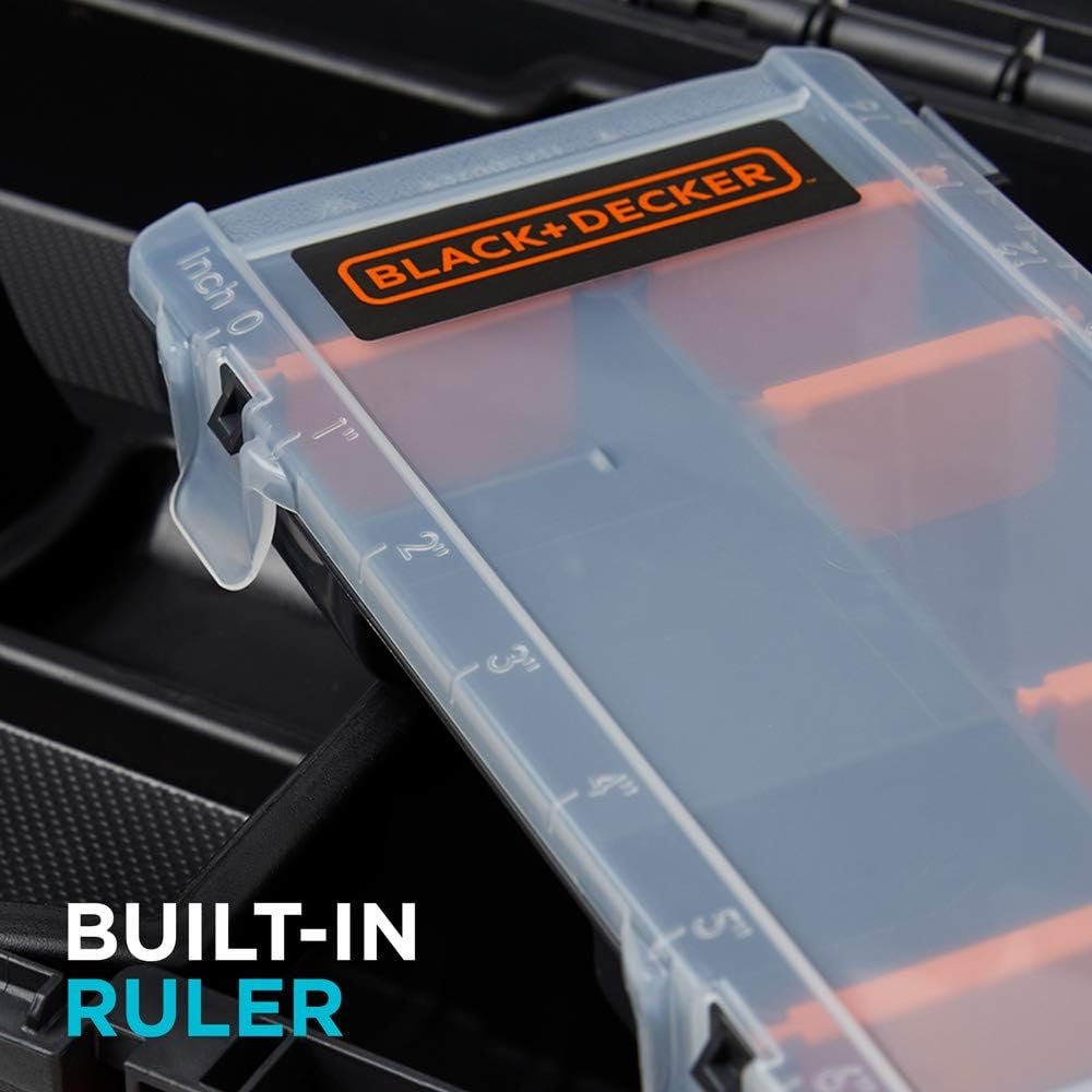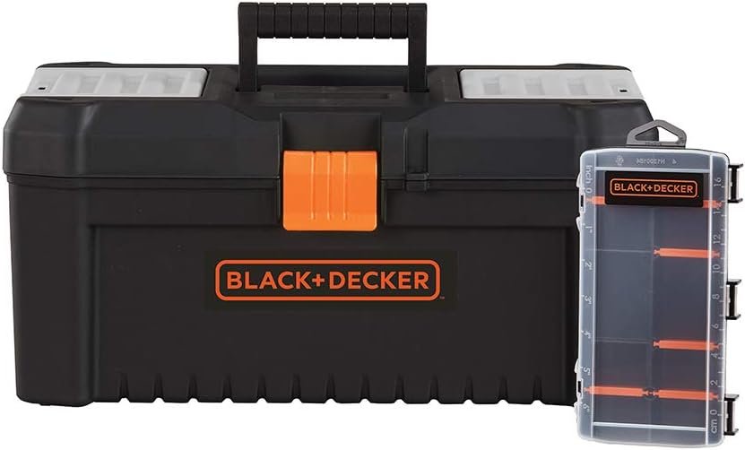 The beyond by BLACK+DECKER Toolbox is a 16" storage case to hold most hand tools. It includes an additional organizer with adjustable compartments and a built-in ruler. This tool tote is lockable so you can protect your gear with. Designed for organization and safety, this hardware storage is portable and long lasting.About beyond by BLACK+DECKER beyond by BLACK+DECKER curates tools for the DIYer and home improvement enthusiast. Make projects fun again with easy-to-use and efficient devices to tackle jobs of all sizes. Home, garden, and yard maintenance have never been this effortless.