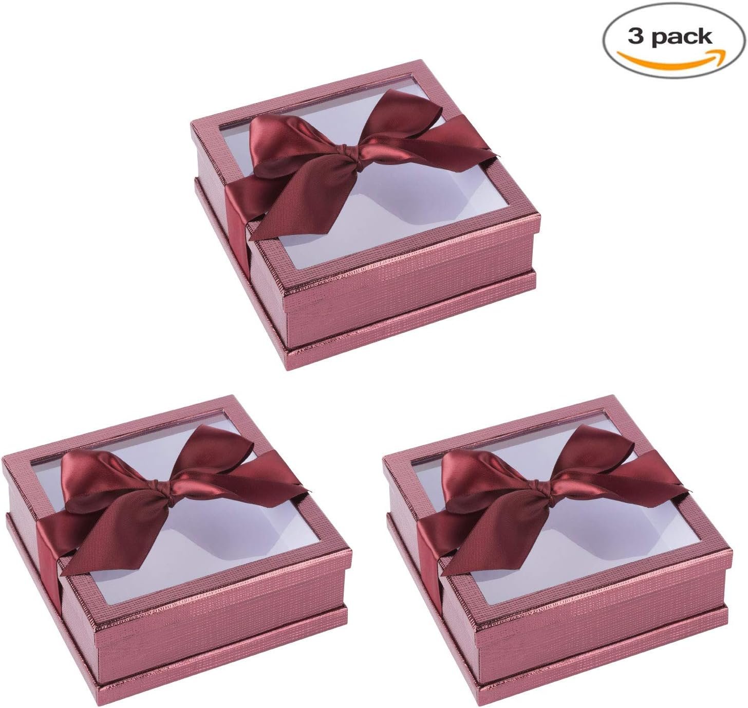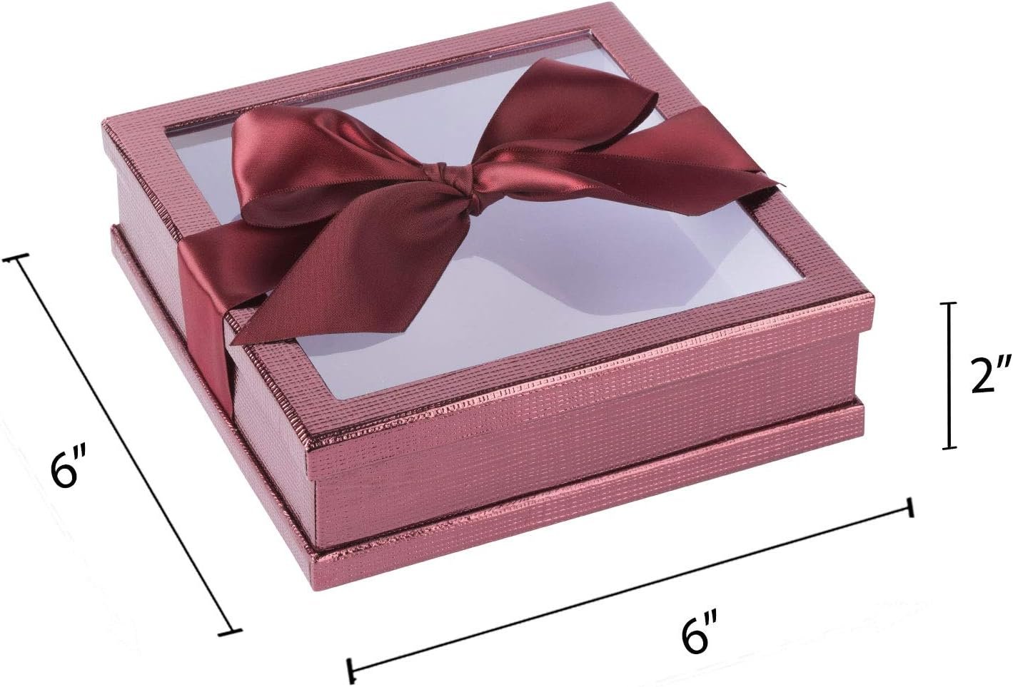 PACKAGE CONTAINS: Set of 3 window boxes with ribbon have dimensions of 6” x 6” x 2”; these party favors candy boxes are also available in four different colors along with clear window and matching ribbon, which is perfect and ready to gift you loves ones